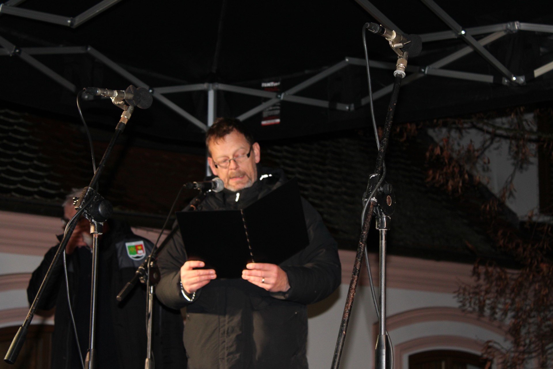 Plzeňský biskup přítomné pozdravil a popřál jim krásný advent i vánoční svátky, Martin Stránský pak přečetl vánoční příběh. ­­Starosta Vladislav Sloup poděkoval skupině ČEZ za podporu rozsvícení vánočního stromu i všem ostatním, kteří se na organizaci akce podíleli. Na závěr popřál dětem i dospělým rovněž klidný advent a pěkné Vánoce